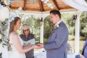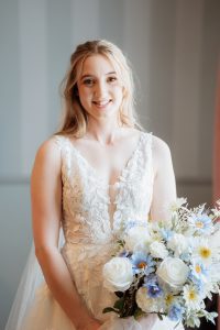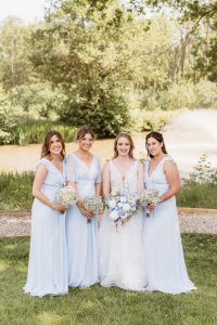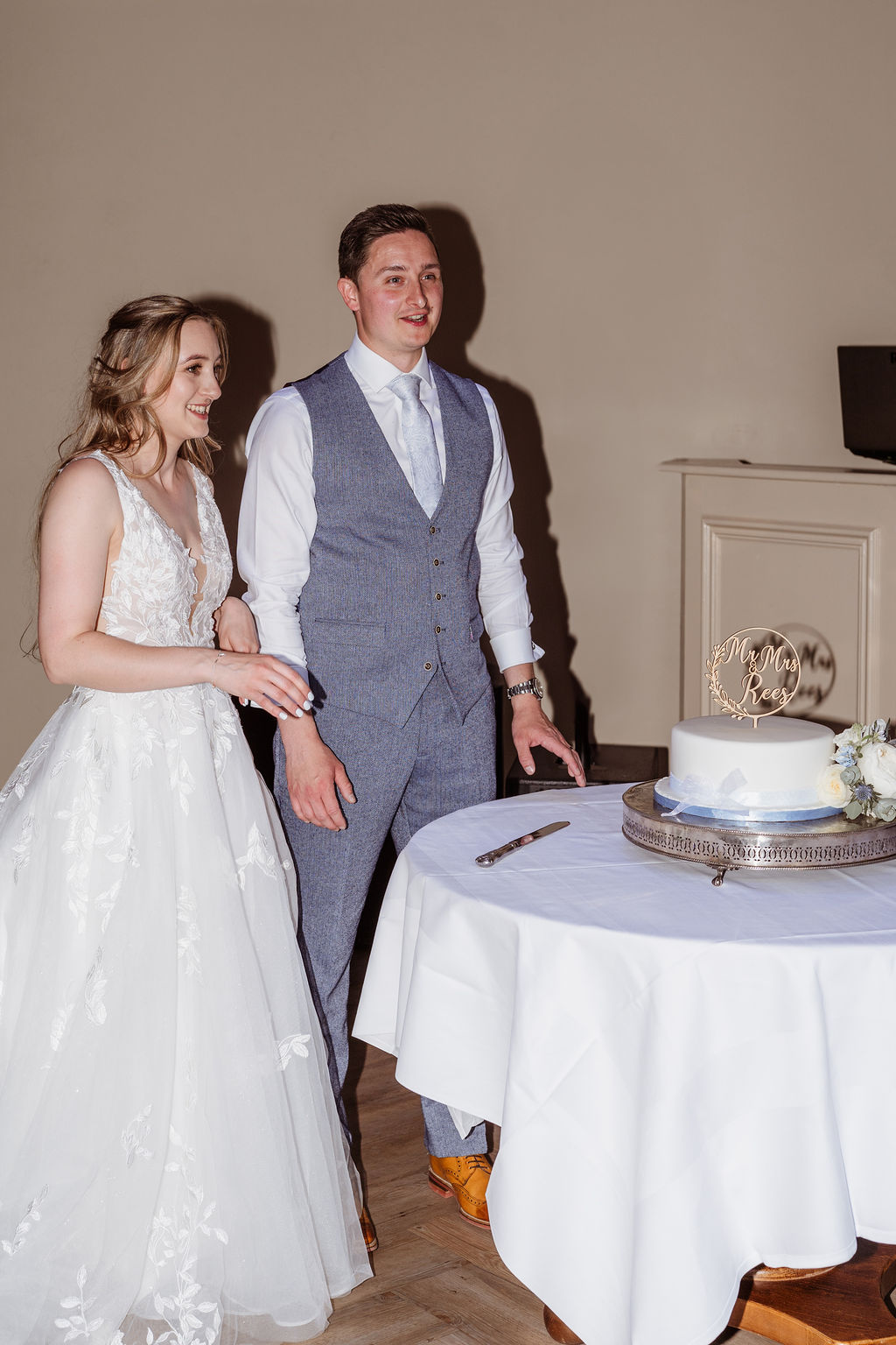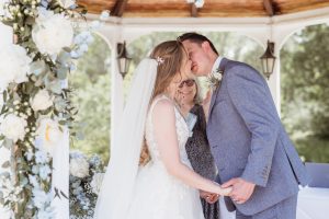 The wedding’s colour theme was pale blue, adding a soft, romantic touch to the day. Becky and Matt’s love for each other was evident throughout the ceremony. Their emotional exchange of vows brought tears to many eyes, making it a truly heartfelt occasion.