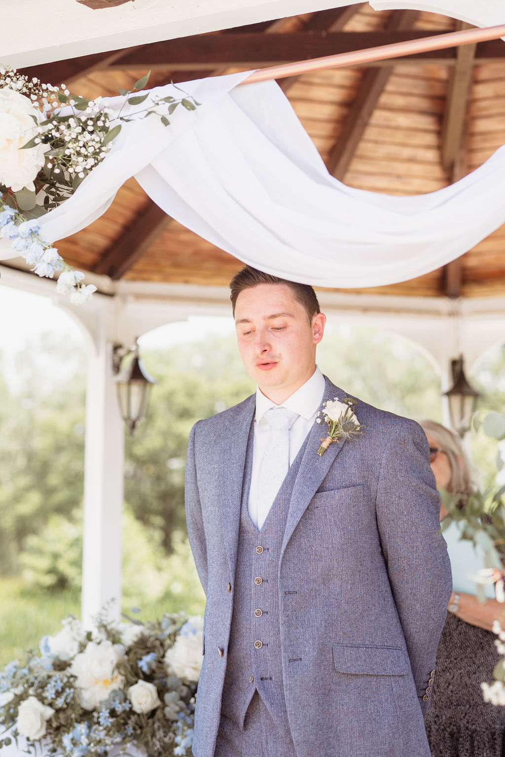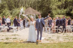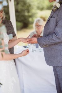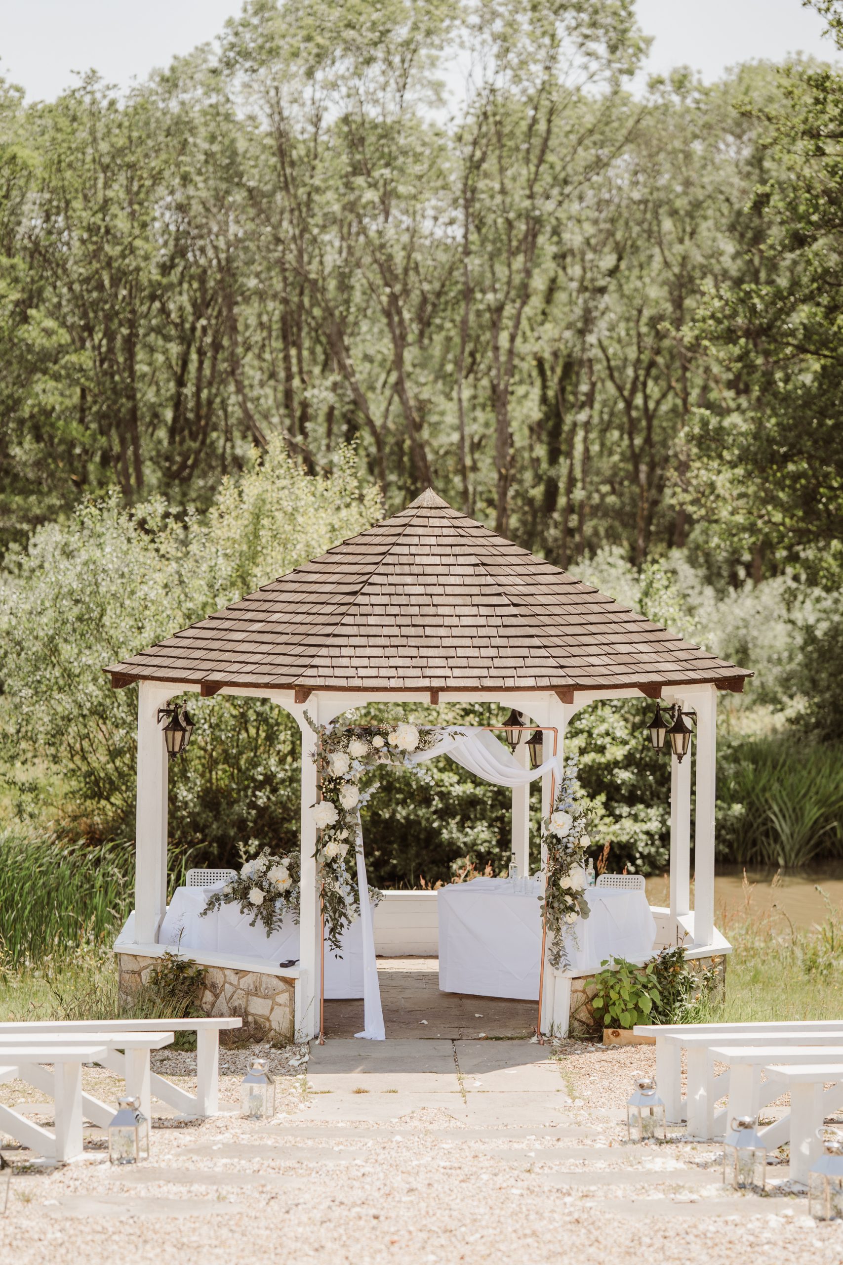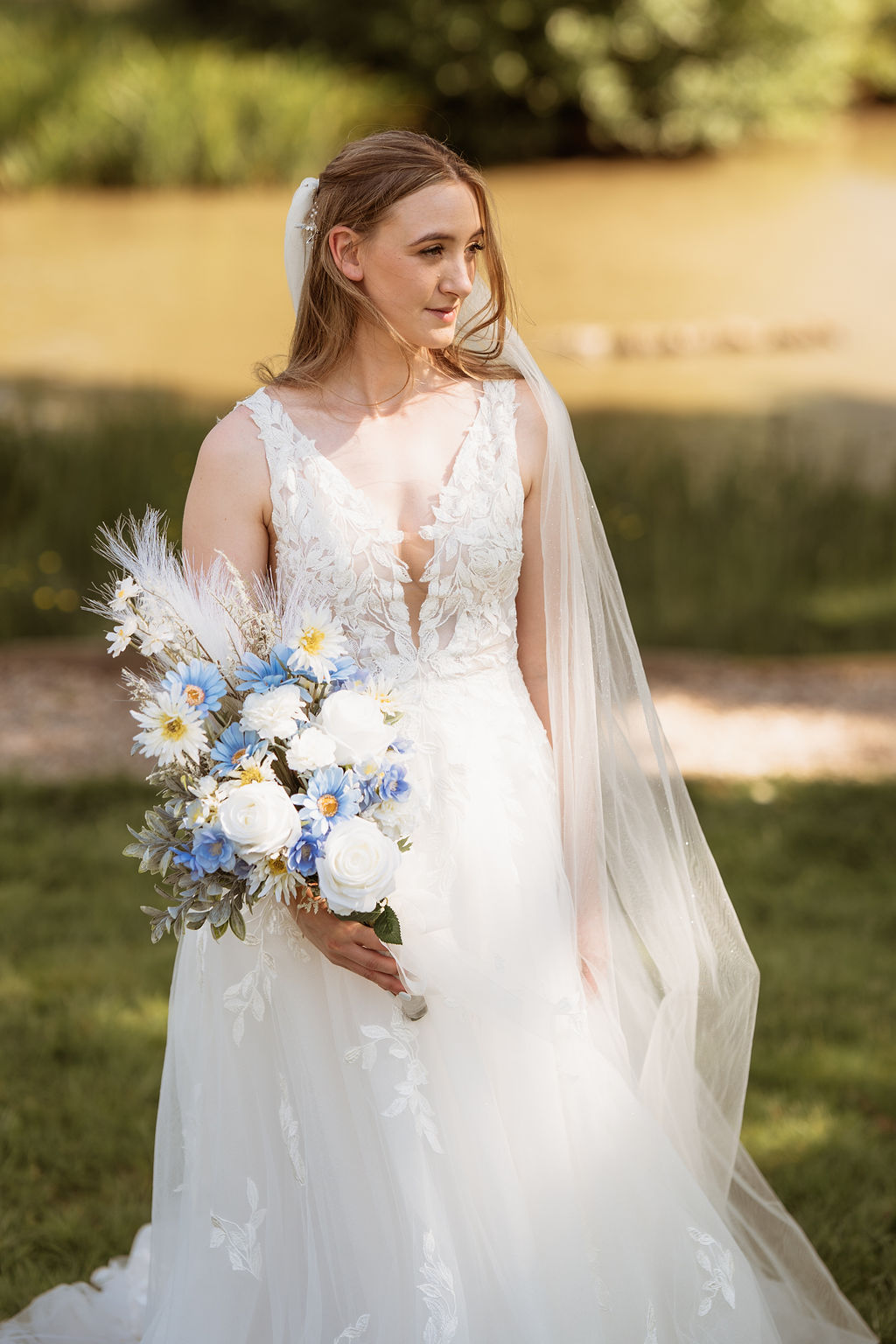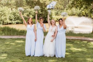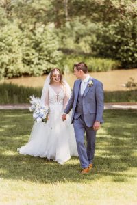 Lythe Hill Hotel is a picturesque venue that offers a blend of rustic charm and sophisticated elegance. On this beautiful summer day, the sun shone brightly, enhancing the venue’s stunning surroundings. The ceremony took place outdoors by the serene lake, providing a perfect backdrop for Becky and Matt’s vows.