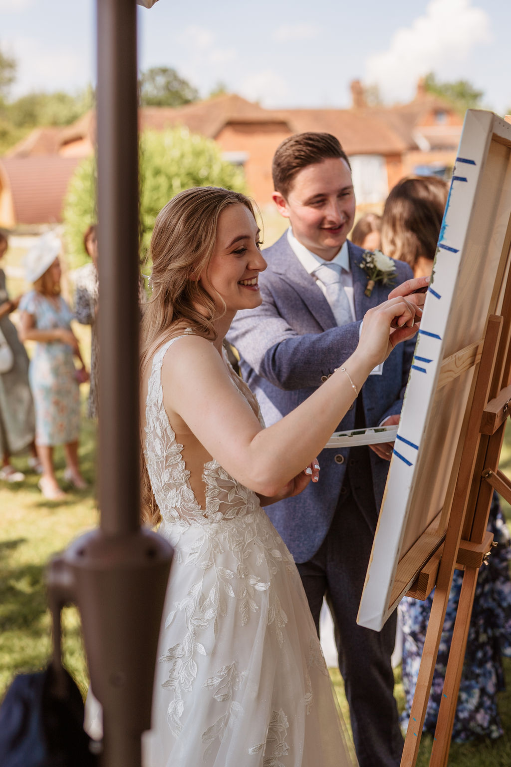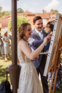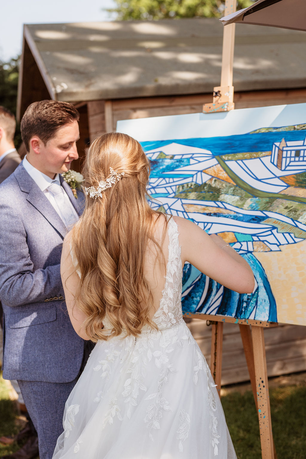 One of the standout features of the day was the unique guest book. Instead of a traditional book, Becky and Matt had a painting of a Cornish scene – a nod to one of their favourite places. Guests were invited to add their own touches to the painting, resulting in a collaborative piece of art that the couple will treasure forever.
